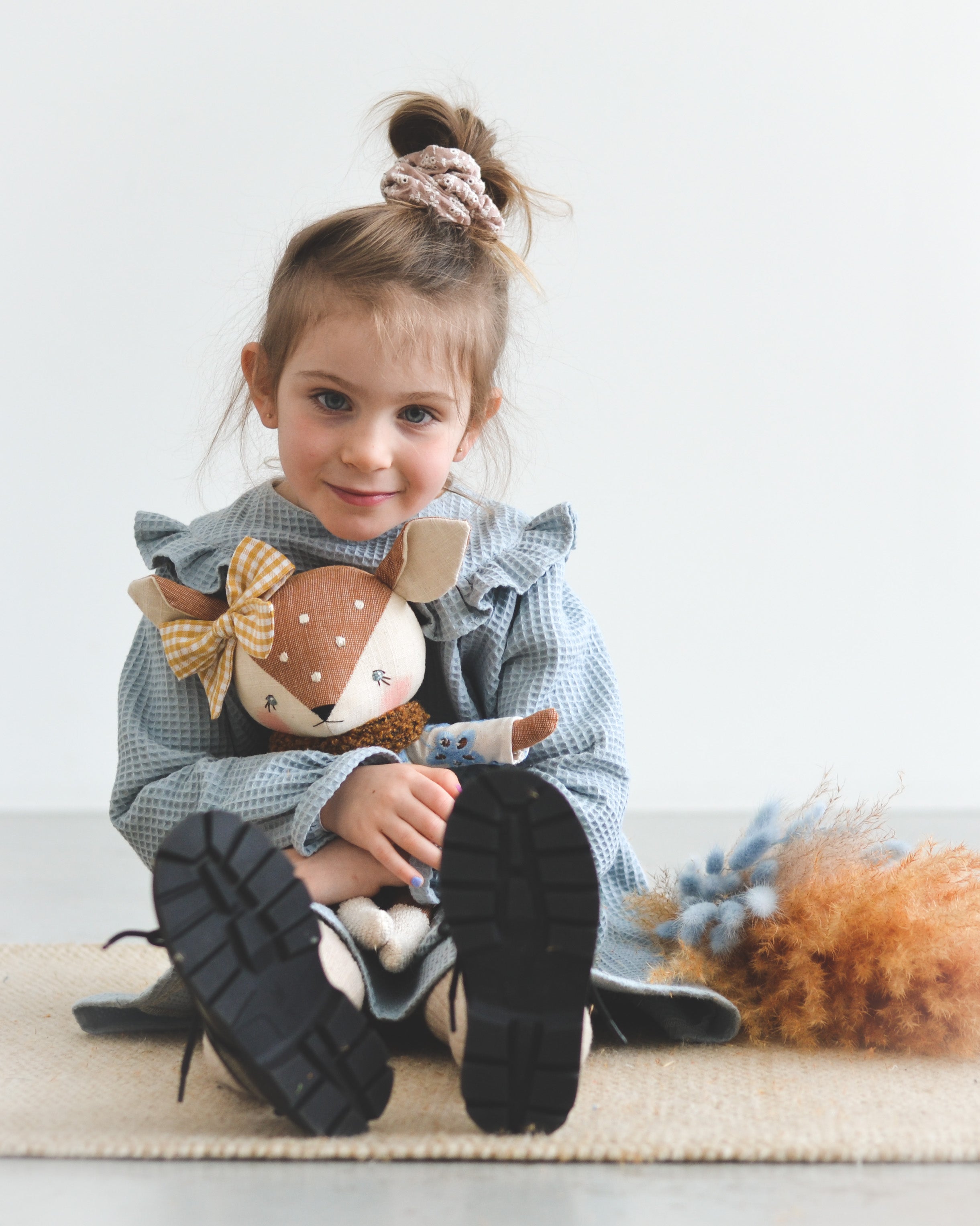 Fawn Doll Block Skirt and Blue Sherpa Jacket