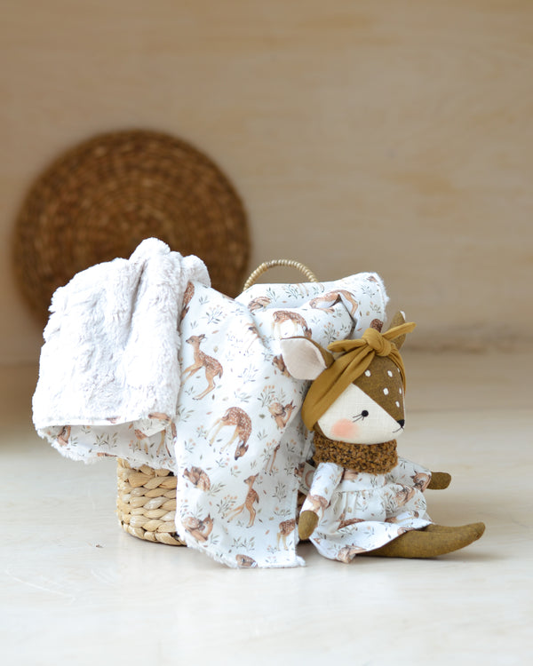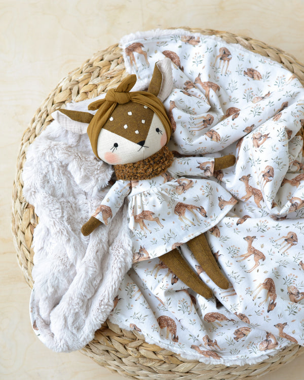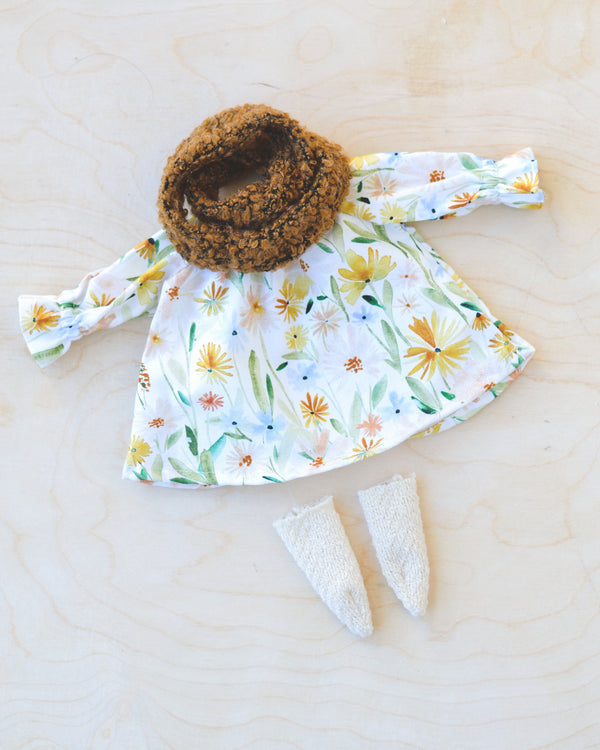 Fawn Doll Block Skirt and Blue Sherpa Jacket