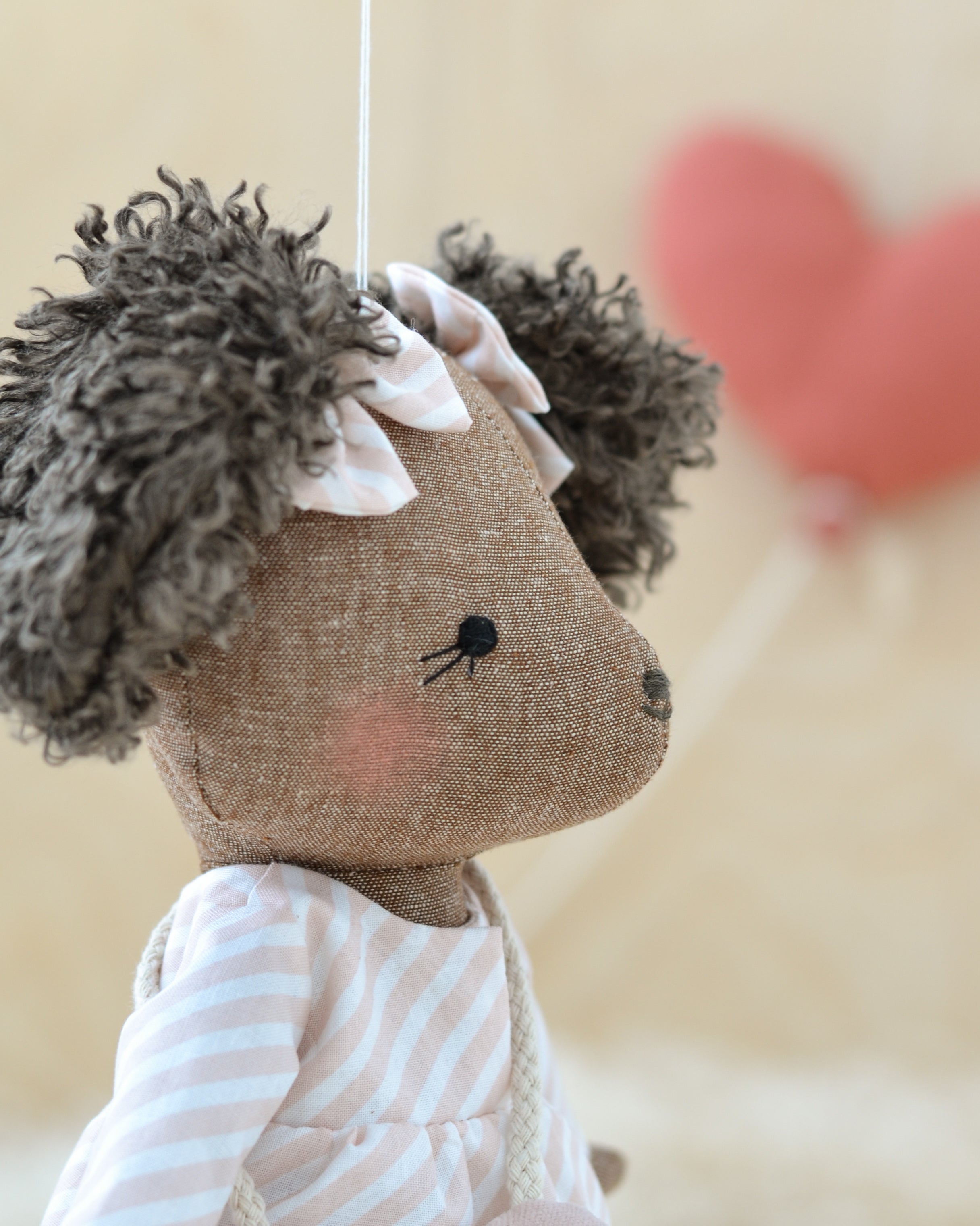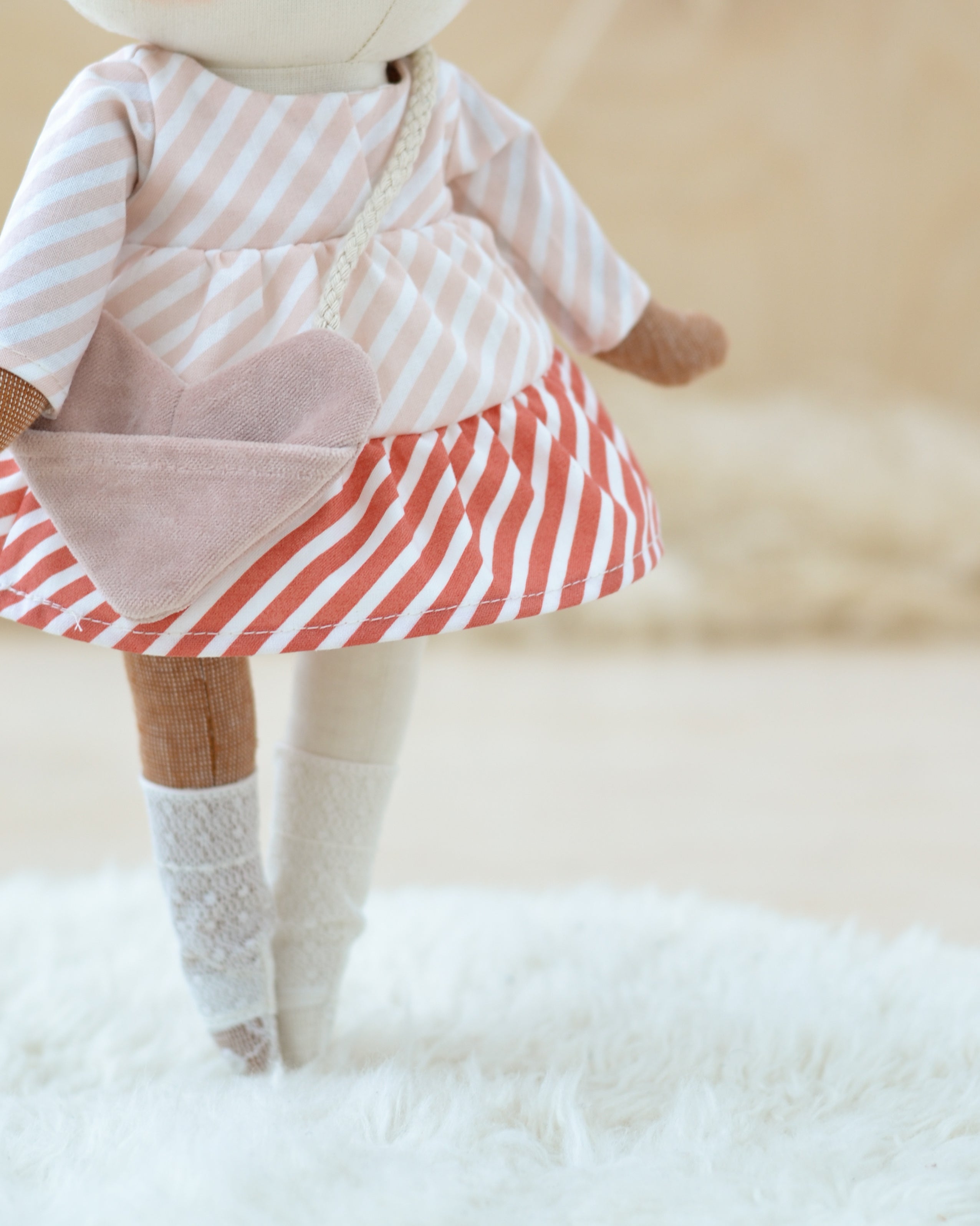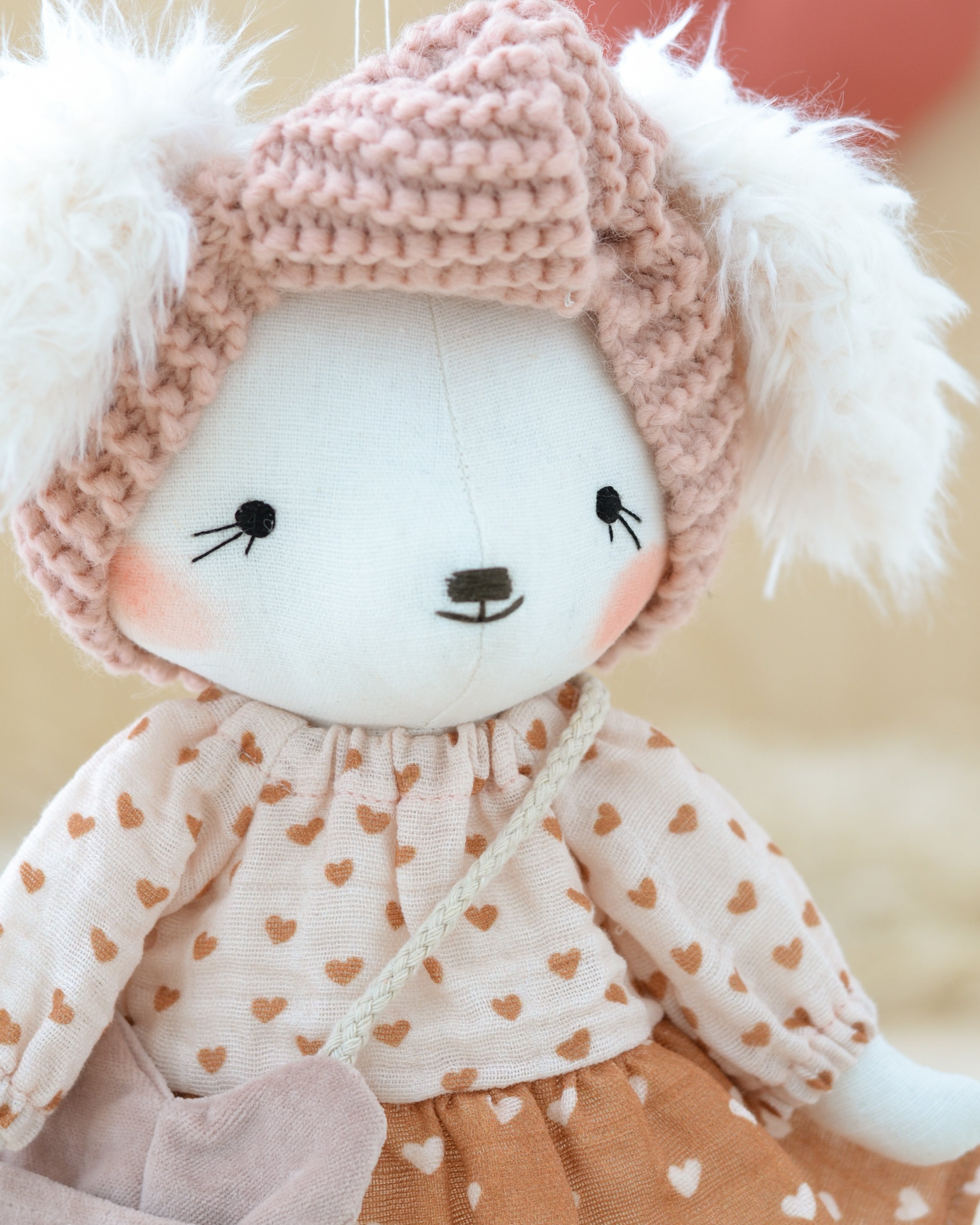 Mouse Doll in a Lovely Pink Dress with a Cozy Pink Striped Scarf