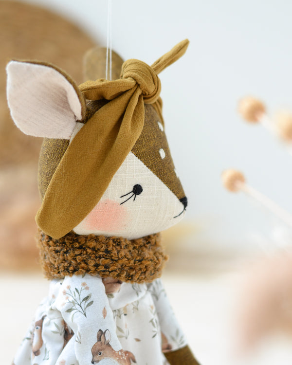 Fawn Soft Toy Louise floral skirt and turtleneck