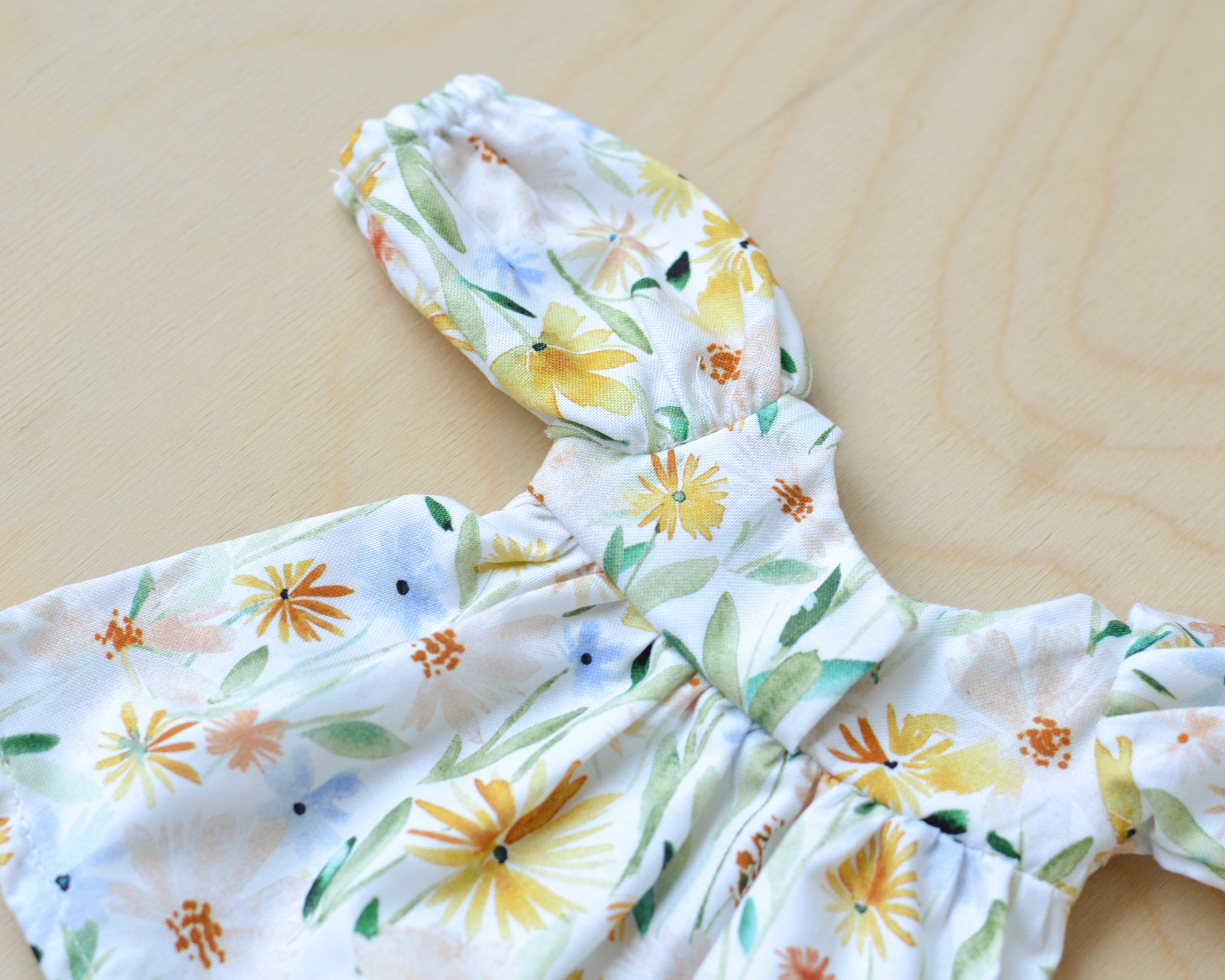 Poupée lapin Jeanne jupe fleurs et col roulé crème