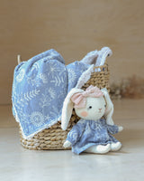 Ensemble poupée lapin et couverture | Bleu motif floral brodé