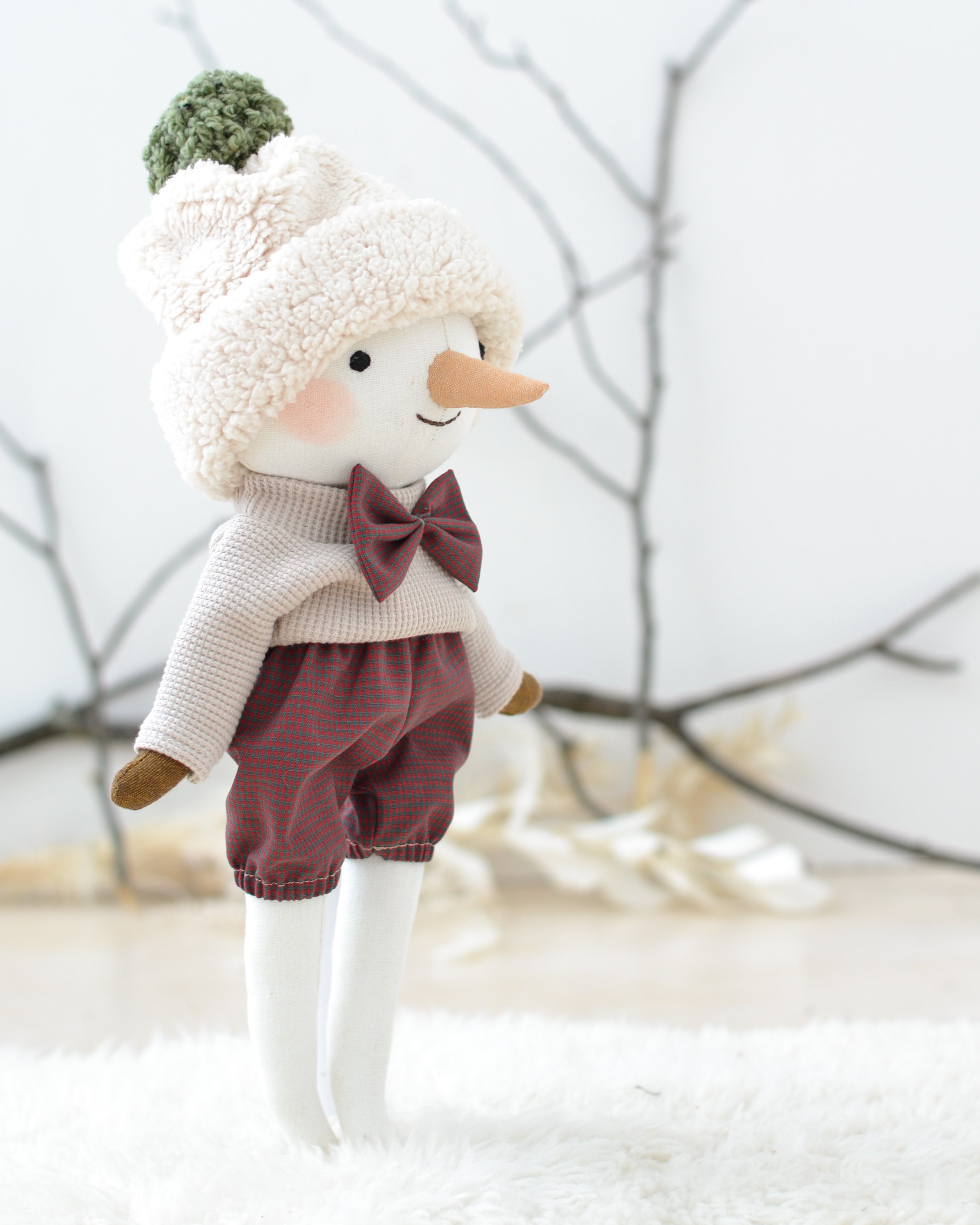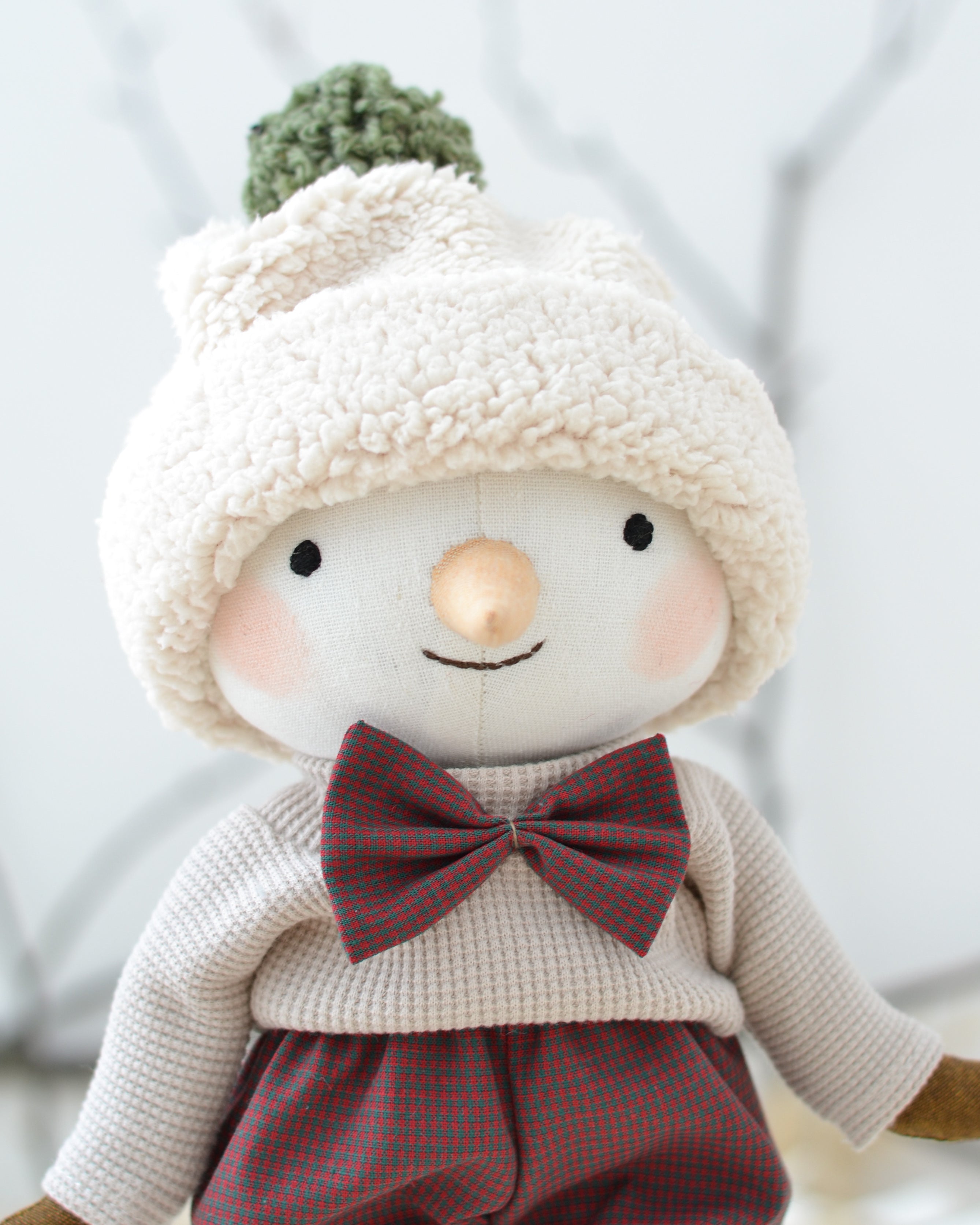 このかわいい人形は私が作成したオリジナルパターンから手作りされた唯一無二のものです。足から頭のてっぺんまで約35cm(14インチ)あります。体は高品質の綿とリネンの混紡生地で作られ、低アレルギー性のポリエステル繊維でしっかり詰められています。顔は手刺繍で、頬は手描きです。