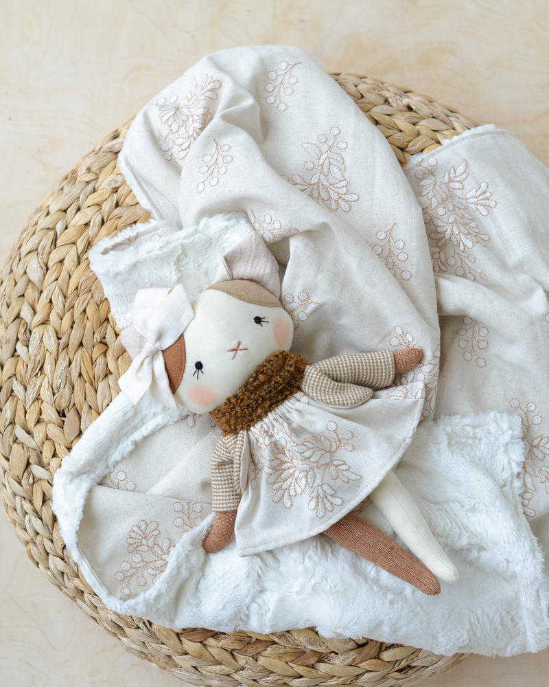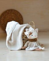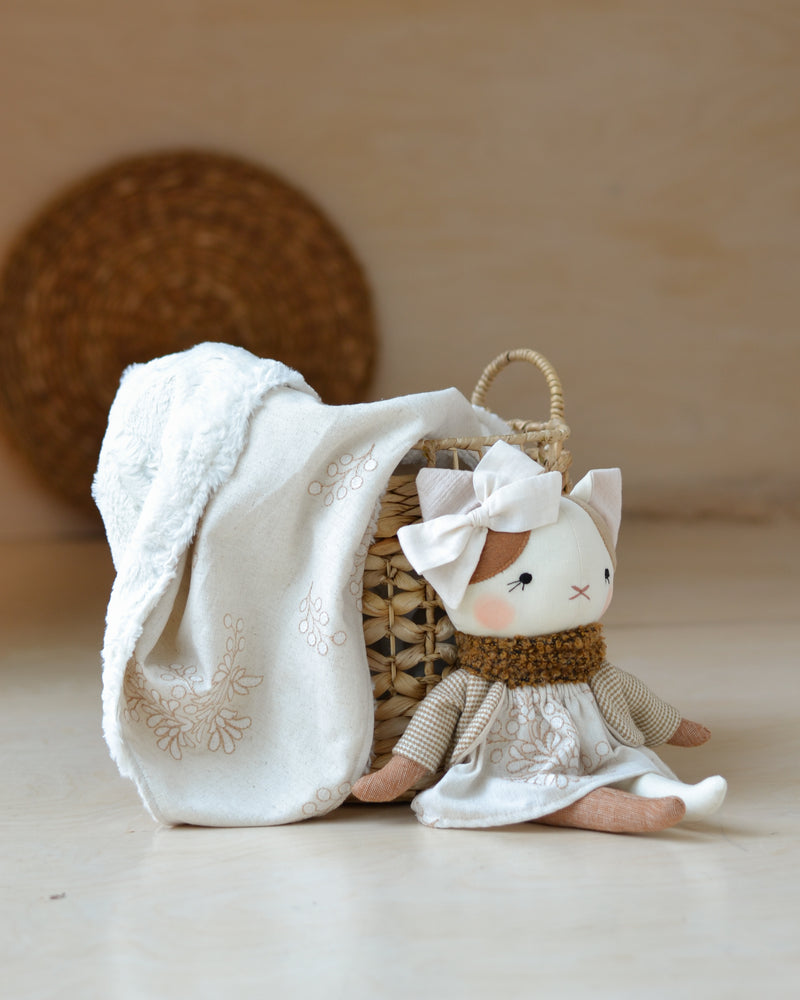 Cat doll and Blanket set | White floral linen
