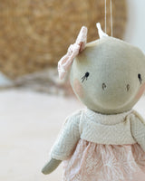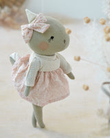 This pretty doll is unique and handmade from an original pattern I created. She measures approximately 35 cm (14 inches) from feet to top of head. Her body is made of a high quality cotton and linen blend fabric and is stuffed firmly with hypoallergenic polyester fiber. Her face is hand-embroidered and her cheeks are hand painted.
