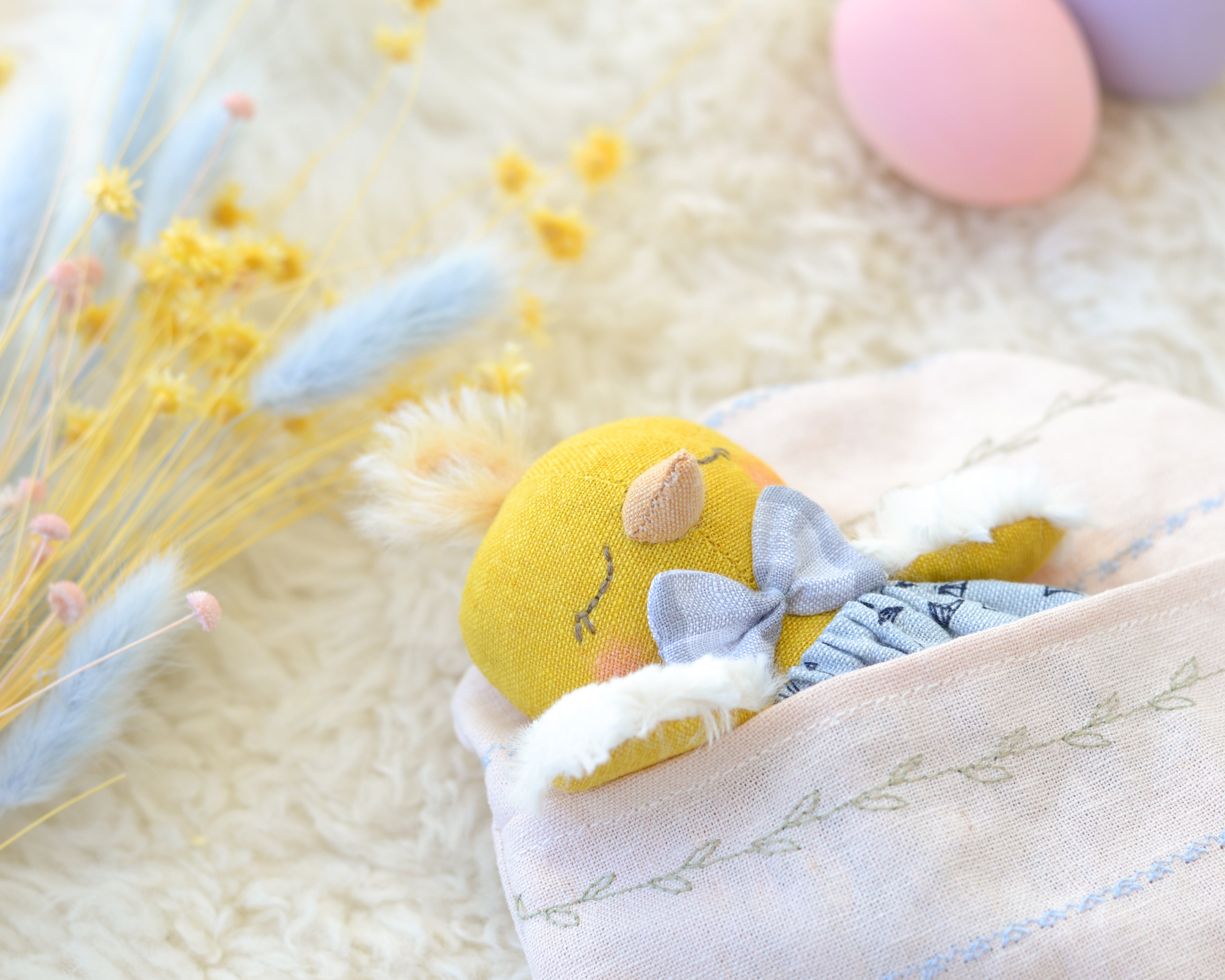 These adorable dolls are unique and handcrafted from an original pattern that I personally created. They measure approximately 15 cm (6 inches) from feet to the top of the head. Their bodies are made from a durable fabric blend of linen and cotton, stuffed with hypoallergenic polyester fibrefill. The face is meticulously hand-embroidered, and the cheeks are delicately painted with a brush.