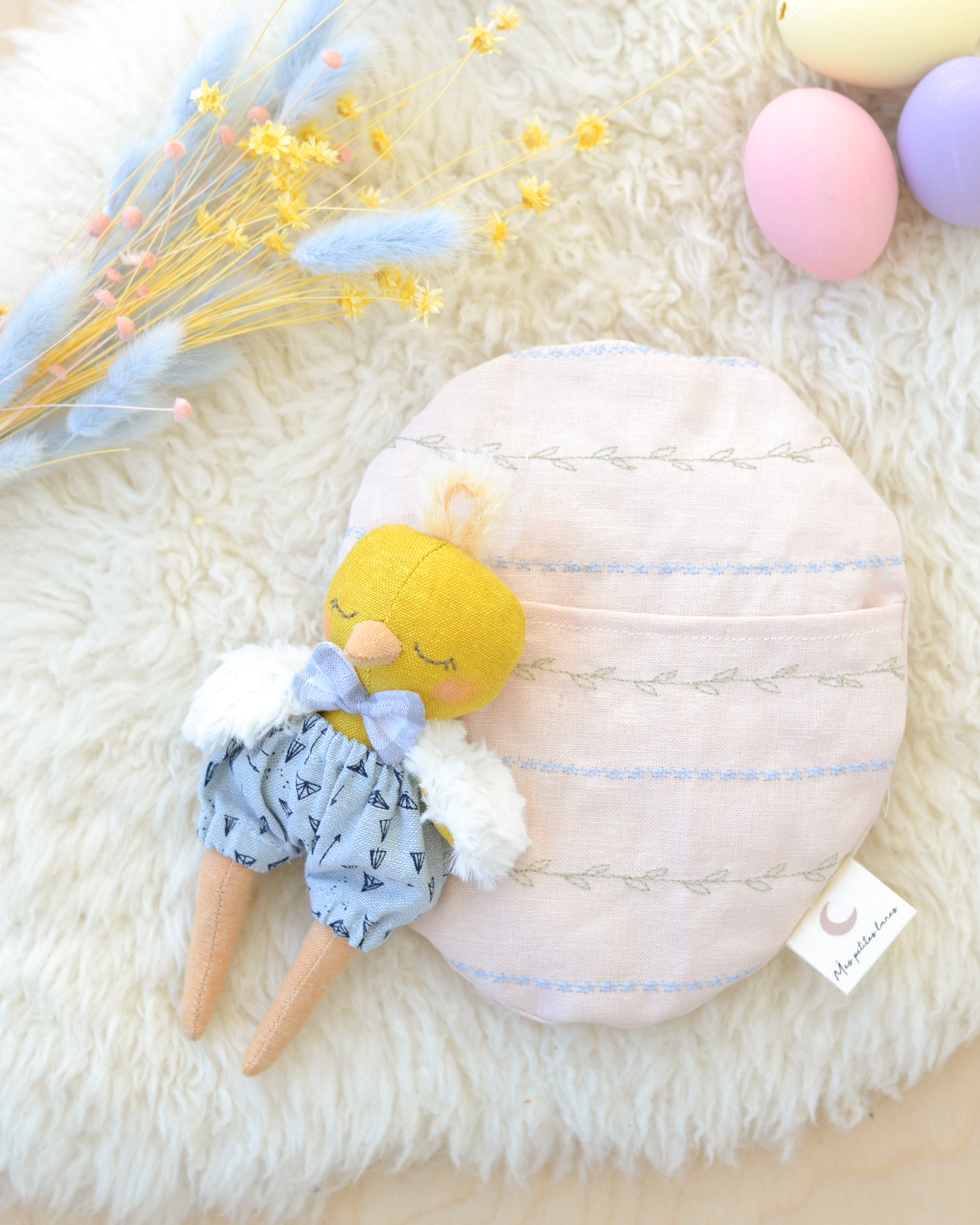 The Easter egg bed is also made from a durable fabric blend of linen and cotton, stuffed with hypoallergenic polyester fiberfill.